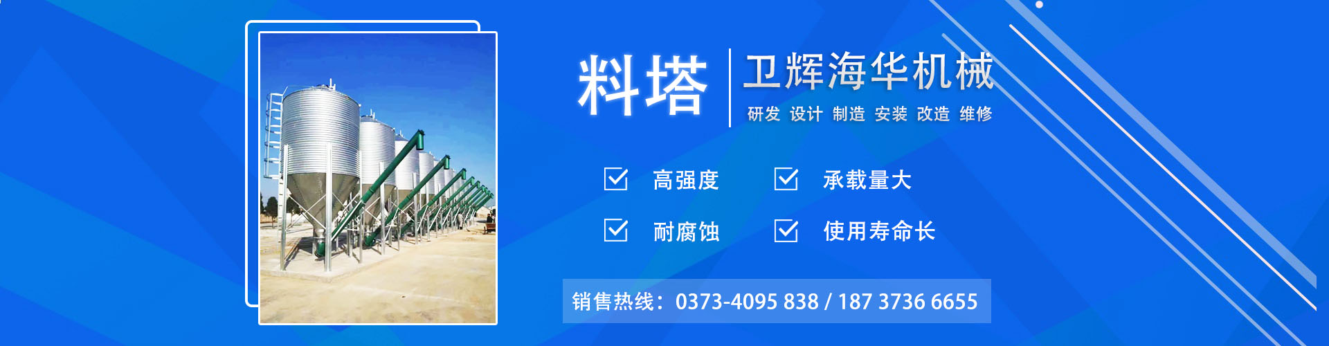 衛(wèi)輝市海華機械有限公司專業(yè)從事料塔料線、飼料攪拌機等方面的研發(fā)廠家,主要生產(chǎn)銷售散裝料塔、不銹鋼攪拌機、臥式攪拌機、小型飼料粉碎機、顆粒機、混合機等飼料機械設備。